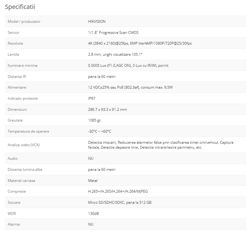 Camera tip Bullet de la Hikvision, avand principalele avantaje: