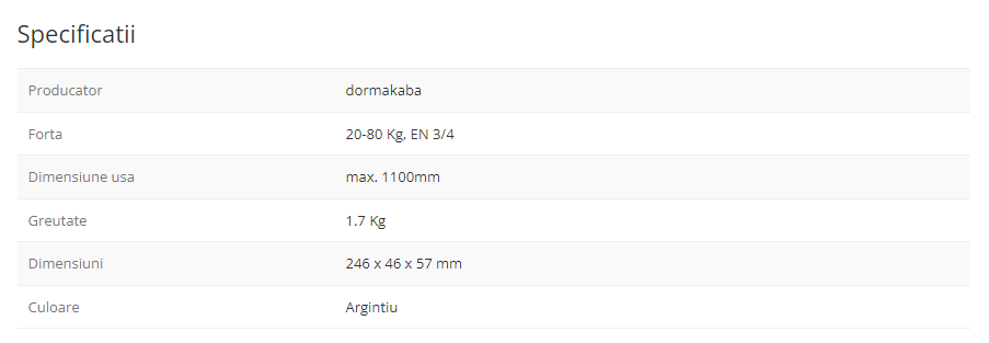 Amortizor standard, reversibil, cu un raport pret/calitate imbatabil ce poate fi utilizat pentru majoritatea tipurilor de usi.