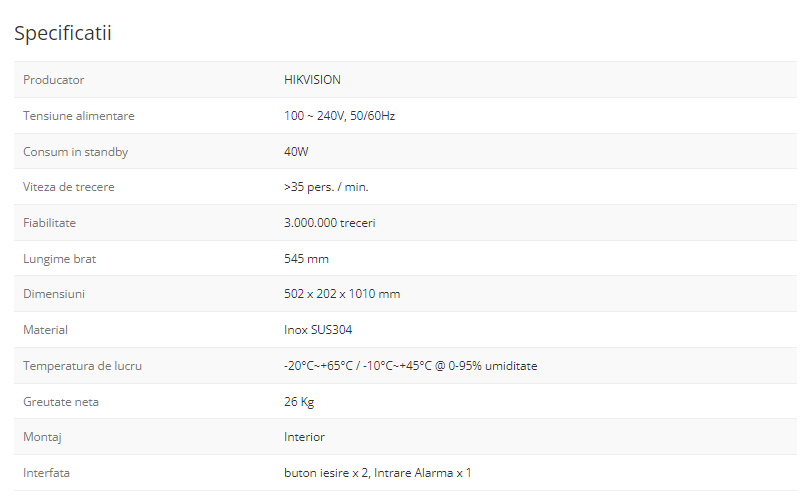 Turnichet tripod bidirectional, brat metalic, culoar acces 550mm - HIKVISION