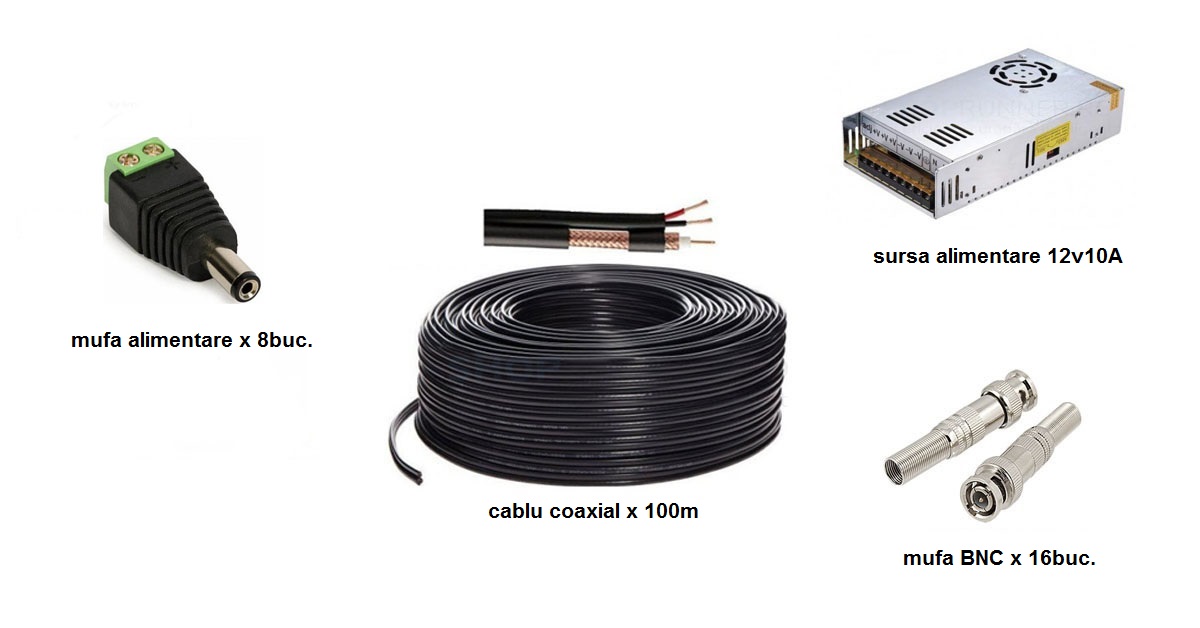 Kit-ul de supraveghere video reprezinta un sistem complet ce contine toate componentele necesare pentru o supraveghere video, oferit de producatorul Hikvision lider in produse ce detin cele mai inalte standarde de calitate ce respecta normele europene in vigoare. Acest sistem este destinat in general tuturor utilizatorilor nu doar instalatorilor, dat fiind faptul nivelului scazut in dificultatea procesului de instalare. Pentru a facilita tehnica de instalare, cablul coaxial ce transmite semnal si alimentare simultan, este gata sertizat (mufat).
