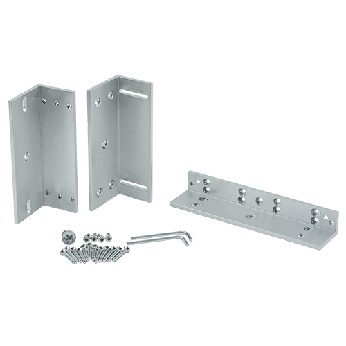 Electromagnetul se monteaza deasupra usii, in interior, folosind suportul L. Contraplaca se monteaza pe usa, la nivelul electromagnetului, folosind suportul Z.
